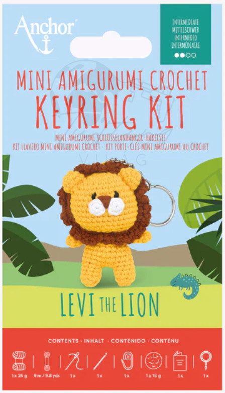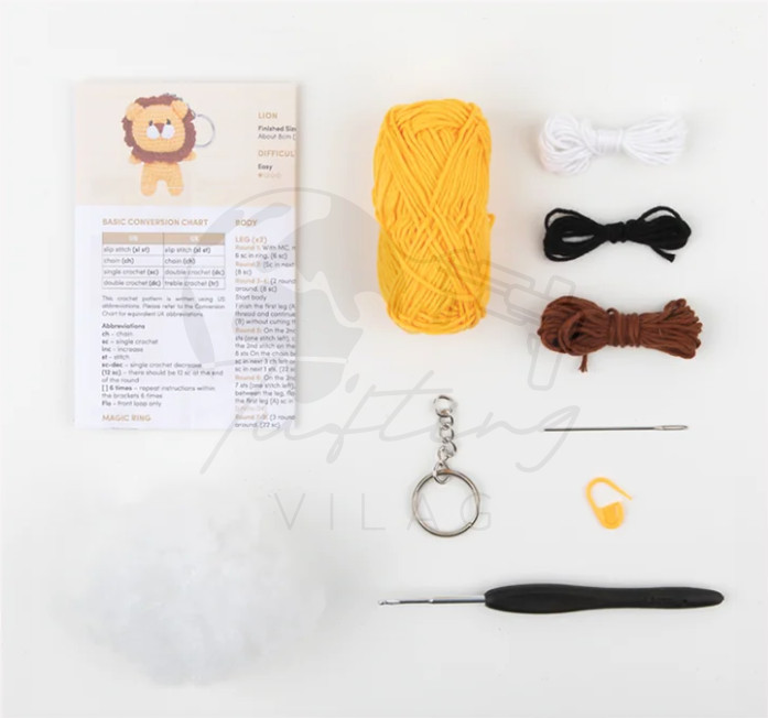 Ez a készlet mindent tartalmaz, amire szükséged van, hogy elkészítsd saját „félelmetesen aranyos” mini Levi oroszlán kulcstartódat. Alap horgolási tudással rendelkezők számára készült, ez a bájos amigurumi figura vidám kiegészítője lehet táskának, kulcsoknak vagy más használati tárgyaknak.