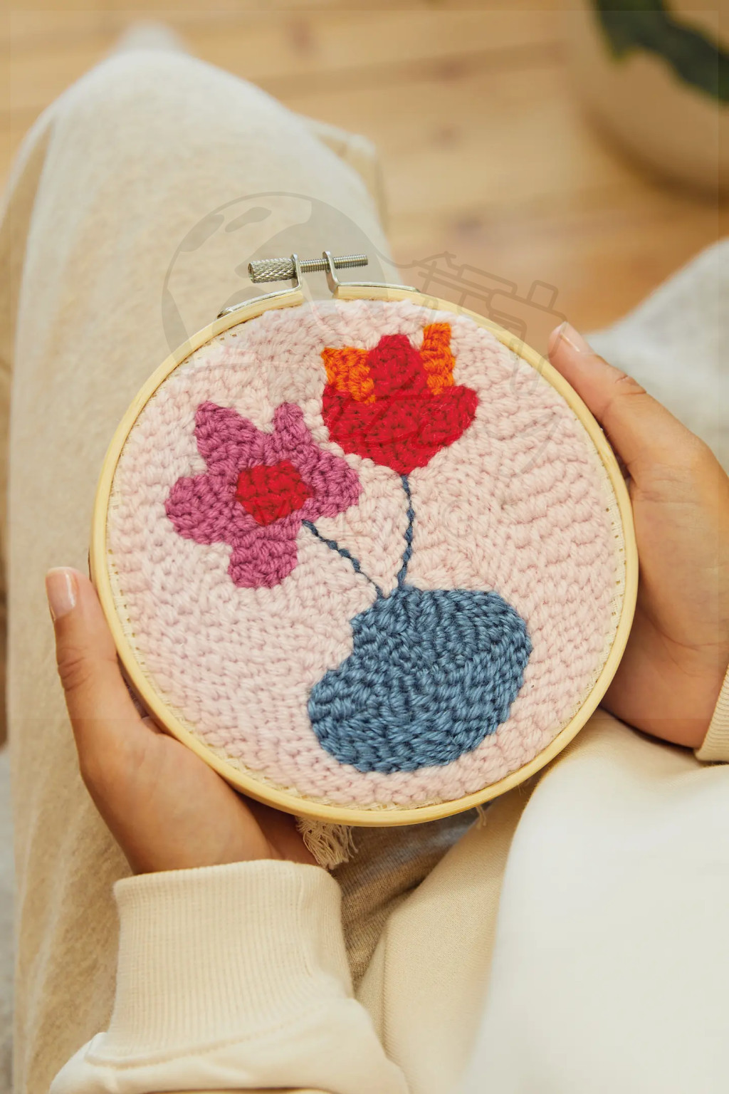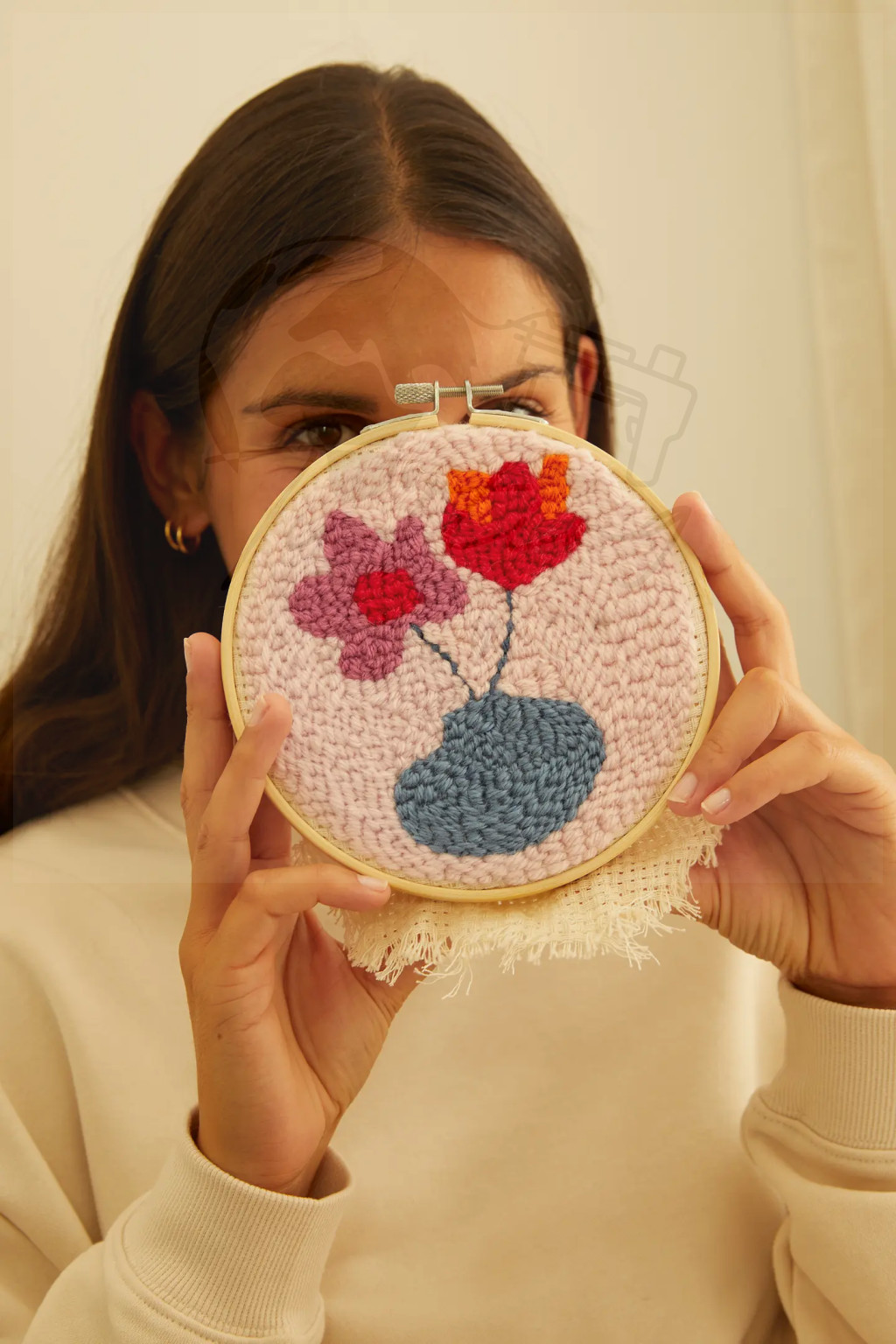The kit includes everything you need, including 75 metres of soft acrylic yarn and step-by-step instructions, making it easy to complete as part of a peaceful creative experience. The floral design is created using just one simple stitch.
