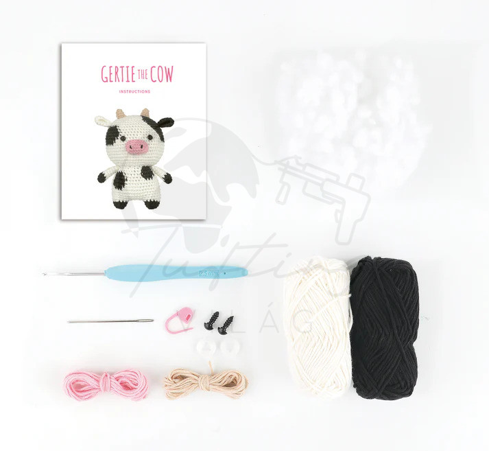 Intermediate crafters will love bringing this small Gertie the Cow design to life. The kit contains everything you need to make your amigurumi, including 100% cotton yarn, thread, a crochet hook, accessories, stuffing and instructions.